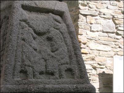 The later, mainly twelfth century crosses sometimes depict bishops or other ecclesiastical figures. In the year 1111 an all-Irish church synod was held at Rath Breasail. At this meeting the first diocesan structure for all of Ireland was established. This shifted the balance of power in church politics from the Abbots to the Bishops. While scholars debate whether the ecclesiastic images on some of the twelfth century crosses represent bishops, abbots or Christ as the bishop of the world, the results of the Synod of Rath Breasail suggest these images represent bishops in their role as the vicars of Christ. The two twelfth century crosses below offer representations of this type of image. On the cross to the left, from Dysert O’Dea (Co. Clare) the figure of the bishop is just below the image of the crucified Christ. On the cross to the right, from Kilfenora (Co. Clare) the bishop is the main feature of the east face of the cross. The crucifixion scene appears on the west face on the head of this cross.