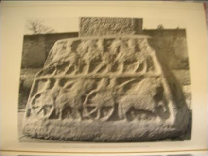 Clonmacnois (Co. Offlay) Cross of the Scriptures, east face of the base. Photo on left copied from Harbison 1992, volume two.